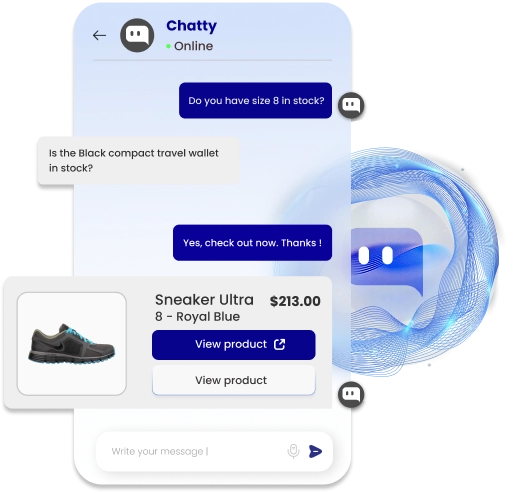 Chatty acts as your AI sales assistant, guiding shoppers from first question to checkout.